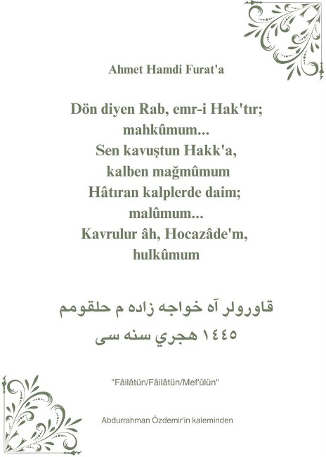 Resim 8: Merhum Hocamızın Prof. Dr. Mürteza Bedir’in emeklilik yılı (1444/2022) için düşürdüğü tarih ve yazdığı akrostiş şiir